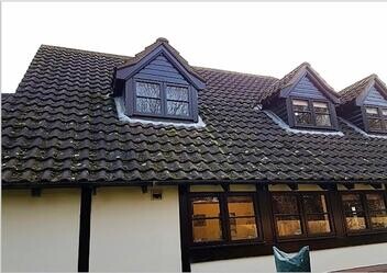 If your roof is covered in moss we recommend our roof moss removal service. The damp climate in the UK can create the perfect conditions for moss, algae and lichens to thrive on a roof. Not only does moss look unsightly but it can also cause other problems such as gutters and downpipes becoming blocked. In addition, the extra weight of wet moss can cause stress on the roof structure. What's more, during winter the freeze-thaw process may cause tiles to break. This can cause premature degradation and the appearance of your roof to deteriorate.
